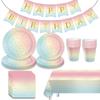 Diamond Party Disposable Tableware Girls Macaron Rainbow Birthday Party Supplies Rainbow Gradient Paper Plates Napkins Cups