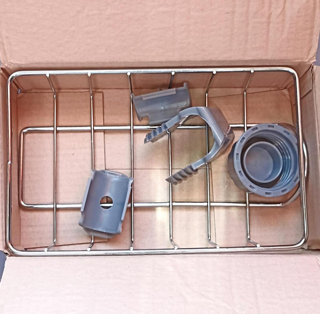 Посылка шла безумно долго... И не надеялась уже... Хлипкий крепёж! Приладили на кран - рассыпалось вся крепёжка в прах... Крепкое здесь только сама корзиночка хромированная. Будем думать, как и что с ней делать... Дополняю... Заменила крепёж на дюбеля, - прикрутила к стене в ванной