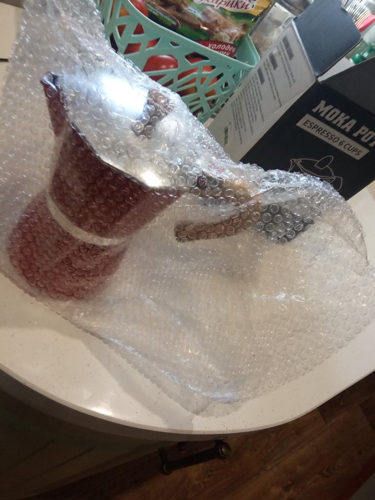 Товар пришёл вовремя. Упакован в пузырчатую плёнку, в заводскую коробку. Обёрнут в утеплитель и в непрозрачный полиэтиленовый пакет. Коробка немного помялась, но это не критично. Товар без видимых повреждений. Цвет, объём, комплектация соответствуют заявленному. Внутри в заводской смазке. Есть на коробке инструкция на английском языке и в картинках. О качестве приготовления кофе напишу позже, когда попробую. А пока товаром довольна, продавца рекомендую.