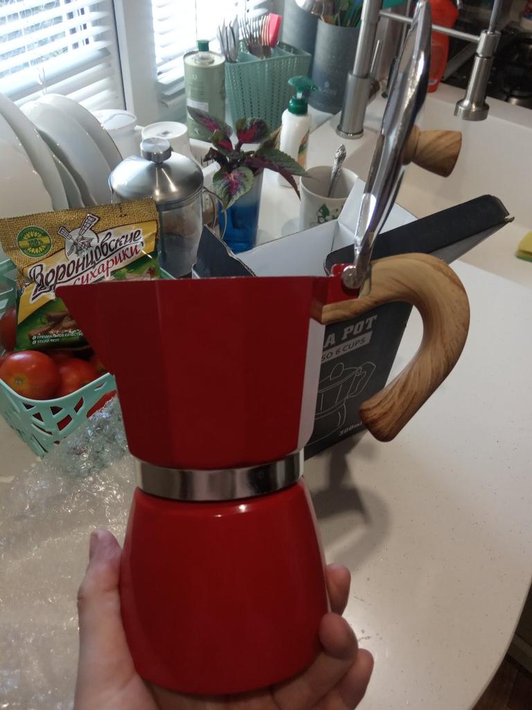 Она крутая! 👍 Выбрала четко гейзерную кофеварку, такая же была подарена мне раньше по объёму, только черного цвета. Эта даже интереснее смотрится, цвет такой жизнерадостный! ❤️ Благодарю! Инструкция по применению: вниз наливаем воду, ставим в середину контейнер с дырочками и насыпаем кофе молотый. После закручиваем сверху верхней отсек резьбовой с крышечкой и ставим на плиту. Кофе не убежит, а по закипанию плавно переходит в верхний отсек с крышкой. Аромат пойдет по всему дому, Вы заранее поймёте, что всё готово. Приятного утра с молотым кофе ☘️🏡🌷