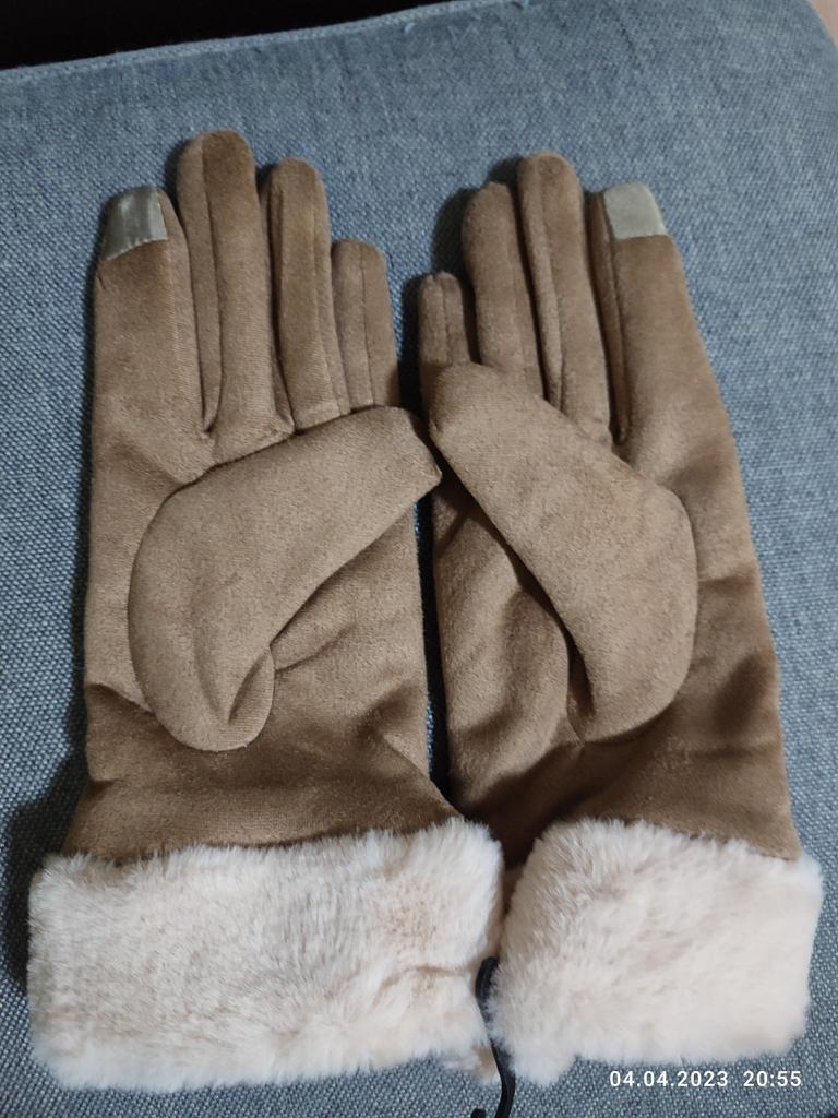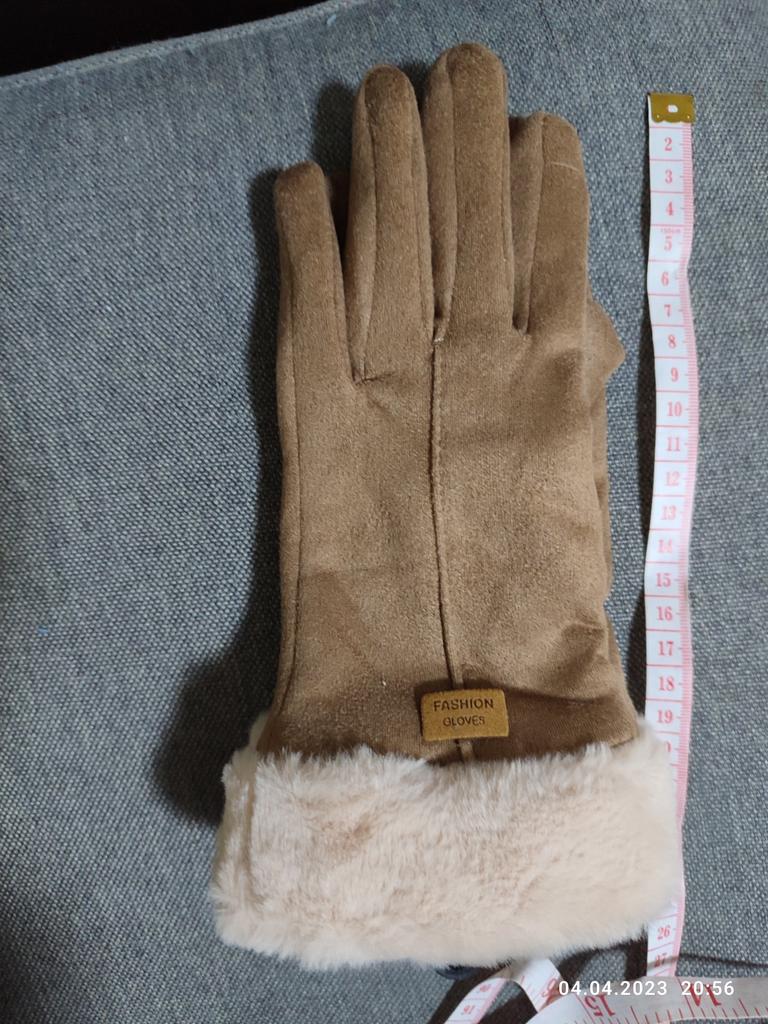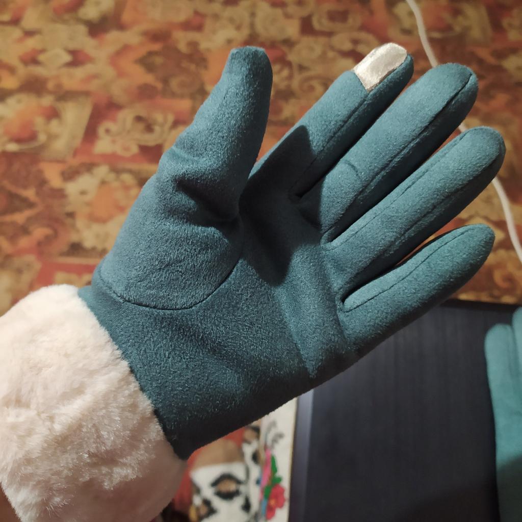 Красивые и стильные перчатки из искусственной замши.🤗 Материал внешне и на ощупь похож на натуральную замшу,изготовлен из полиэстера на основе натурального хлопка. Ткань имеет 👍 специальную защитную пропитку,которая делает материал прочным и устойчивым к любым воздействиям. На ощупь поверхность мягкая, гладкая. Внутри перчаток искусственный утеплитель. На указательных пальцах есть небольшие вставки для сенсорного экрана. Я попробовала, всё отлично 👍 работает. Цвет перчаток выглядит как на фото продавца 🙂👍, очень приятный. По размеру мне перчатки подошли идеально 👍 На руку покрупнее,я думаю,они не подойдут,так как они не тянуться.У меня запястье 16см, больше 23см будут впритык 🥲. Качество хорошее 👍💯:прошиты ровно, аккуратно,торчащих ниток нет, дефектов не имеют. Перчатки не очень толстые, вряд ли подойдут на сильный мороз.Но это всё индивидуально.🤔 Перчатки к покупке рекомендую 🤗👍💯: смотрятся они элегантно, приятные и снаружи,и внутри, качество отличное 👍 и цена доступная.