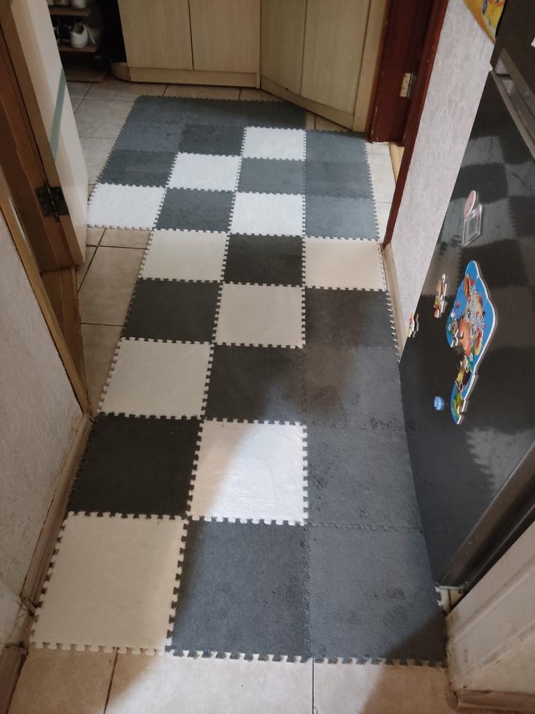 Немного разочарована, так как пазлы не сходятся в углах, надеюсь отлежится, выпрямиться и будет нормально. Ещё сильно сыпется. А так по нему очень приятно ходить, холод от пола не чувствуется. Ни учитывайте, что пропылесосить ни так легко, так как к пылесосу присасывается и пазл расходится, думаю решить эту проблему склеив пазл с обратной стороны малярным скотчем.