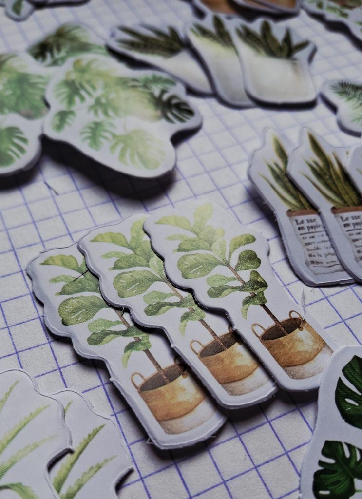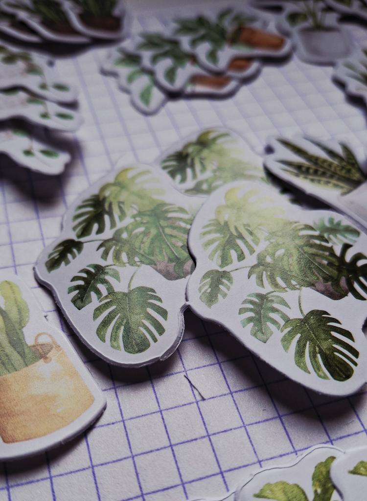 Набор стикеров в виде комнатных растений. Я взяла этот набор для оформления своего ежедневника, и осталась очень довольна! В комплекте 44 наклейки: 14 разных изображений, по 3 штуки каждого, и один вид — 2 штуки. Такой ассортимент позволяет разнообразно украшать страницы и создавать уютную атмосферу. Стикеры выполнены качественно, изображение маленьких комнатных растений очень милое и стильное. Они легко приклеиваются, что важно для аккуратного оформления. Размеры наклеек компактные, идеально подходят для ежедневника, не занимают много места, но придают заметный декоративный эффект. Рекомендую этот набор всем, кто хочет добавить немного природы и уюта в свои записные книжки или блокноты! Наклейки вырезаны по контуру. Безопасны для детей, не имеют запаха, напечатаны методом цифровой печати. Эстетичные стикеры не увеличат толщину блокнота. Также они могут украсить ноутбук, чехол телефона, дневник, пенал, банковскую карту и т.д. ⭐ Продавец упаковал товар в почтовый конверт с пупыркой внутри. ⭐ Трек номер отслеживался до почтового отделения. ⭐ В приложении пришло уведомление о готовности к выдаче заказа. ⭐ Доставка в Петербург заняла 25 дней.