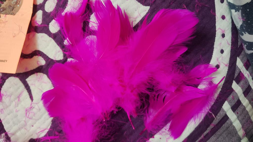 Перья хорошие. На фото немного ярче. В жизни чуть темнее. Сколько в пачке не считала. Спасибо Продавцу и Джум!