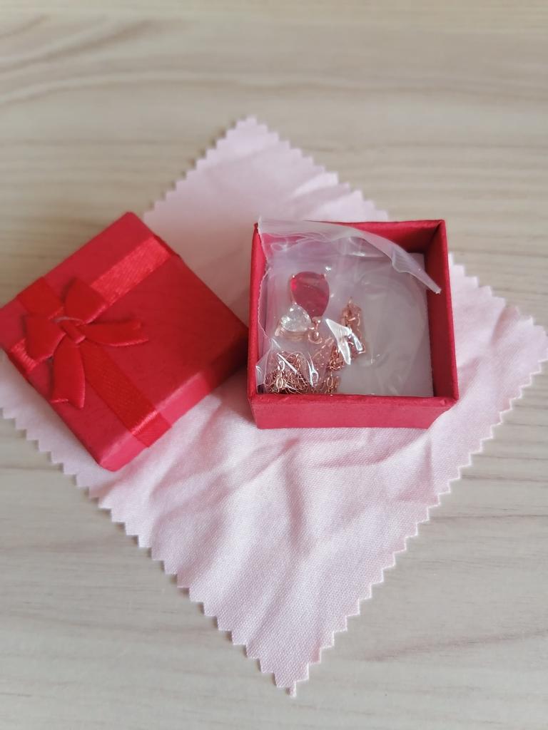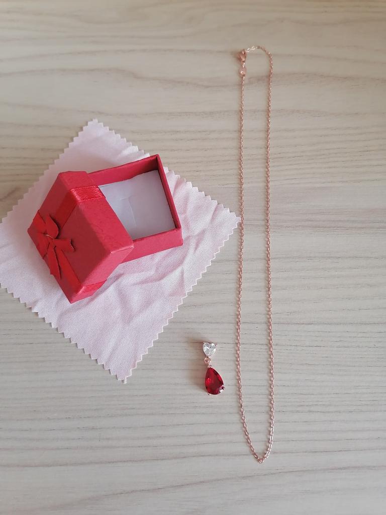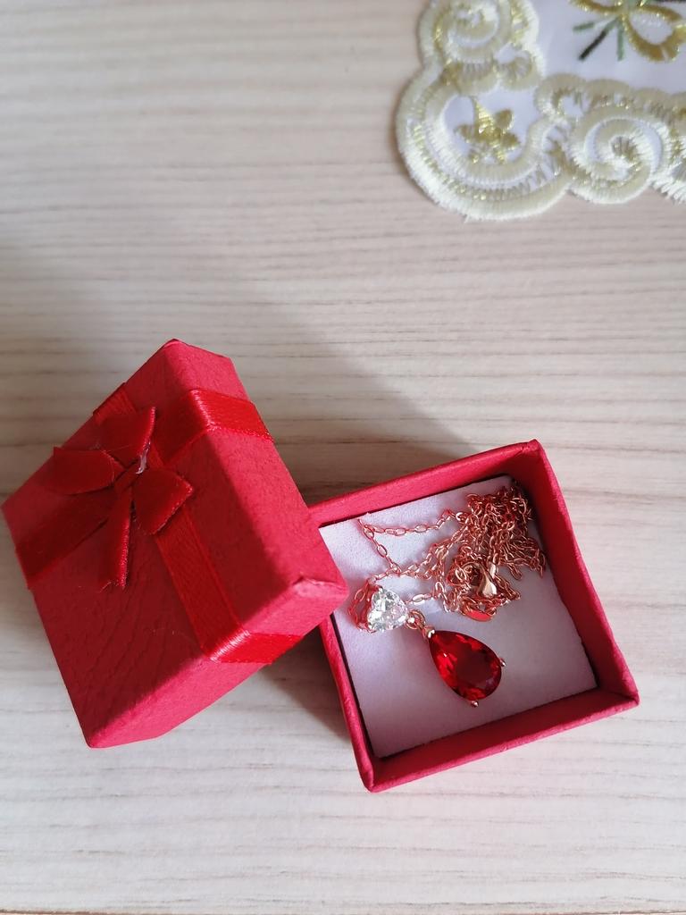 Кулон от Bella Box заказывала к серьгам и кольцу от Kinel - получился полноценный комплект. Цвет камней перекликается, оттенок позолоты - тоже. На кулоне выбита проба. Кулончик пришел в красной коробочке с приложенной к нему тканевой салфеточкой, что очень приятно. Эффектно смотрится на черном и сером фоне одежды за счет введения белого циркона - он оттеняет черно-красную контрастность. Хорошая задумка мастеров. Буду ещё покупать у Bella Box. Спасибо мастерам и Джуму!