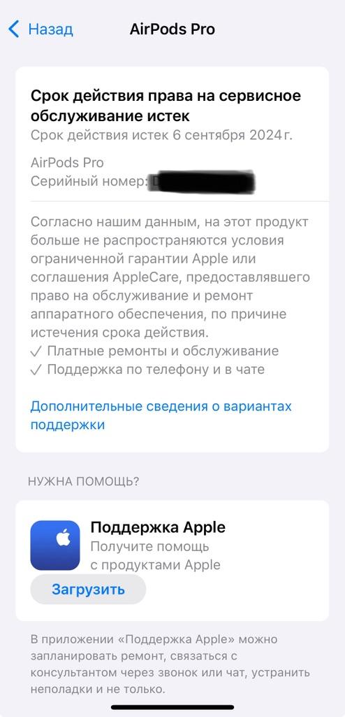 Срок действия на право сервисного обслуживания истёк 06.09.2024 года!Постоянно прерывается связь с айфоном!!!Неоднократные обновления ПО не помогают!!! Направлено обращение в службу поддержки, служба поддержки на связь не выходит! Очень разочарован в покупке!( Специально приобрёл на данной платформе, с учётом более высокой стоимости товара, в надежде на то, что он с гарантийным сроком и каких-либо проблем с товаром не будет! При этом оператор сообщил, что имеются сложности по возврату товара приобретённого из зарубежа! Также уточнял перед покупкой про оригинальность, мне оператор сообщил, что стоит ознакомиться с отзывами клиентов, вместо того, чтобы дать ответ напрямую!( На будущее, вряд ли буду приобретать подобные товары на данной платформе!( Фото с истечением срока действия и другие доказательства направлю по мере решения данной проблемы! Представители данной платформы попытались решить эту проблему, но необходимы документальные доказательства, а за ремонт сервисные центры не беруться(неофициальные), сообщая, что они не ремонтно пригодны и проще осуществить замену частей(составляющих). Спасибо за внимание!