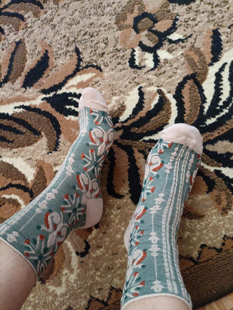 На 22.5см носочки как раз. Пришли быстро. Думала рисунок будет плоский, но оказалось, что он фактурный, как на фото продавца. Носочки приятны к телу, резиночки выраженной нет, но они не сползают, ткань синтетика тонкая, ножки не потеют. Так что продавца рекомендую, не обманывает. Мне пришëл один лишний носочек, на фото видно. Надеюсь из-за этого проишествия ни кто не получит на один носок меньше.