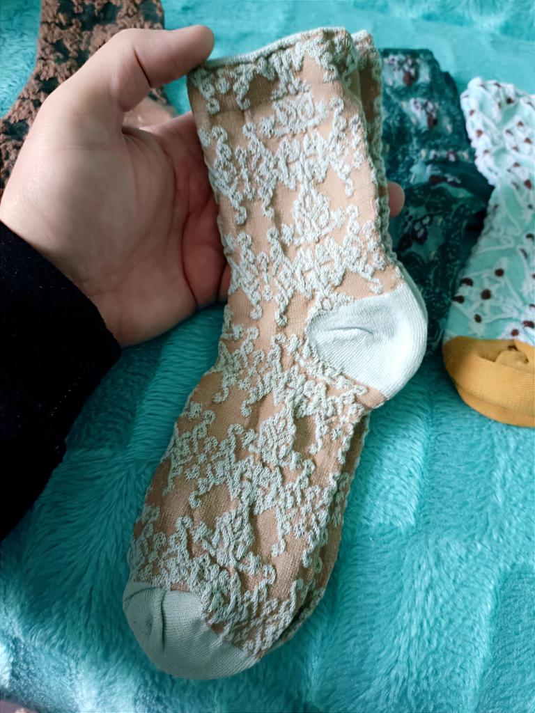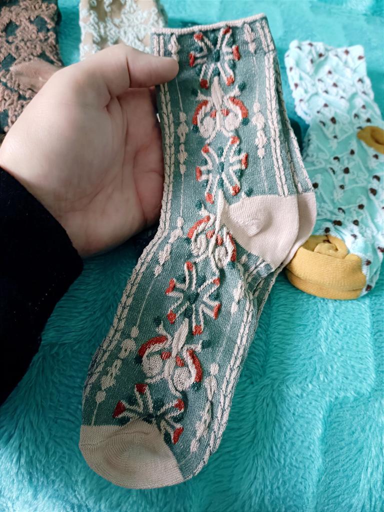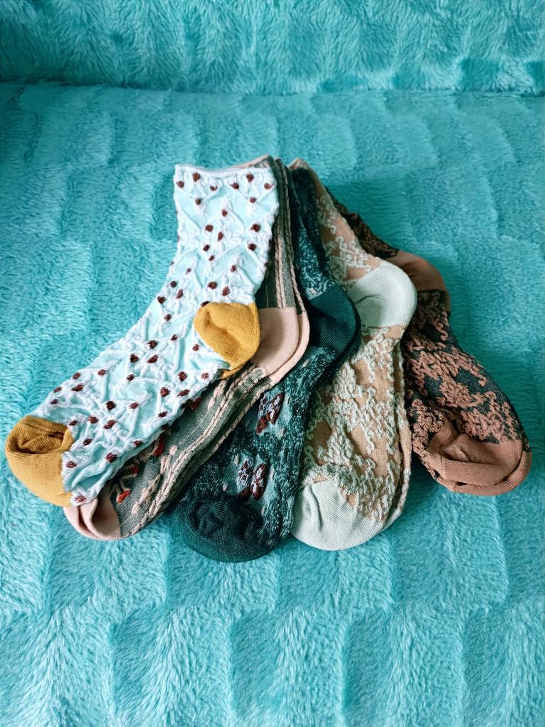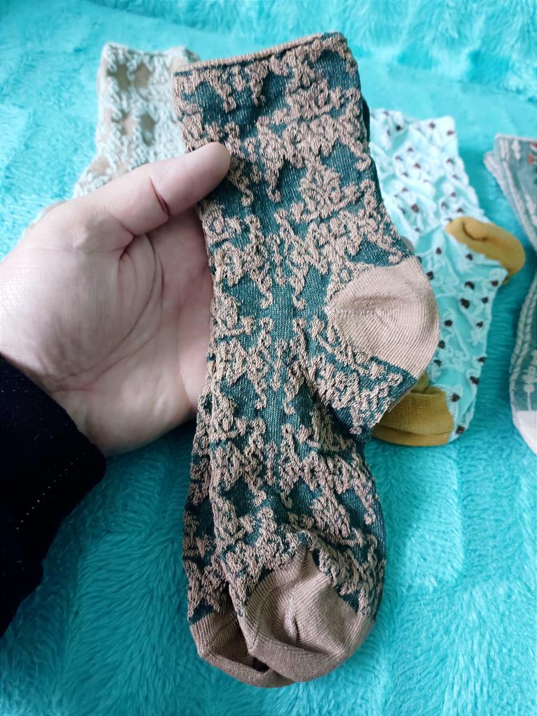 🧦 КАЧЕСТВЕННЫЕ И КРАСИВЫЕ ЖЕНСКИЕ НОСКИ, КОМПЛЕКТ ИЗ ПЯТИ ПАР 💯👍 🙋♂️ Добрый день, уважаемые читатели! Весна ещё только пытается вступить в свои права - в Краснодаре почти ежедневные дожди, пасмурное небо и холода. Однако постепенно теплеет, и совсем скоро зимние тёплые вещи станут не нужны. В том числе и носки. Самое время приобрести летние! Что я и сделал. Заказал для моей любимой матушки ещё один комплект из пяти пар носков, на этот раз в так называемом «дворцовом стиле». 🚀 Доставка быстрая - 27 дней, трек полностью отслеживался. Упаковали просто, но аккуратно. Точно такие же носки я покупал в прошлом году, дарил жене и сестре - они носят эти носки до сих пор, и они им нравятся. Качество отличное! Носки выполнены в стиле ретро. Это очень удобные носки, кроме того, они стильные. Изделия средней длины, полностью закрывают щиколотки. Носки эластичные, довольно-таки тёплые. 🧦 Дворцовый дизайн, текстура ткани и рисунки имитируют жаккард. Изготовлены носки из высококачественного смесового хлопка, специально обработанного - для мягкости и комфорта. Красивые растительные и цветочные узоры добавят стиля и элегантности любому наряду. Толстая и мягкая ткань обеспечивает максимальное тепло и комфорт в холодные дни. 🕵️♂️ Тиснёный жаккардовый дизайн в стиле ретро, в дворцовом стиле добавляет неповторимый шарм. Это поистине универсальные носки, которые легко сочетаются с любым нарядом - для повседневной носки, или особых случаев. У продавца на выбор есть ещё вариант таких же по внешнему виду и качеству, но коротких носочков - на лето. Носки универсальны для любого сезона. 🤩 Также на фото и видео можно увидеть качество с внутренней стороны, а именно: отсутствие ниток, "кривизны" и прочих неприятностей. Один размер, на длину стопы 22-25 см, то есть подойдут на российские размеры от 32-го до 39-го. Смотрятся носки красиво и незаурядно. Цвета выверены хорошо. Качество носков меня очень порадовало. Такие носки прослужат долго - уже проверено! В случае с этими носками я остался приятно удивлён в этом плане. 🤩 Каждый шов детально проработан, и даже с изнаночной стороны всё выглядит аккуратно. Плотная резинка деликатно обтягивает ножку, однако, не сдавливает её, и это, несомненно, огромный плюс. Стирать каждую пару можно вручную, с мылом, но можно и с помощью машинки, на низкой температуре. Покупкой я очень доволен. Покупайте, и Вы тоже будете довольны!