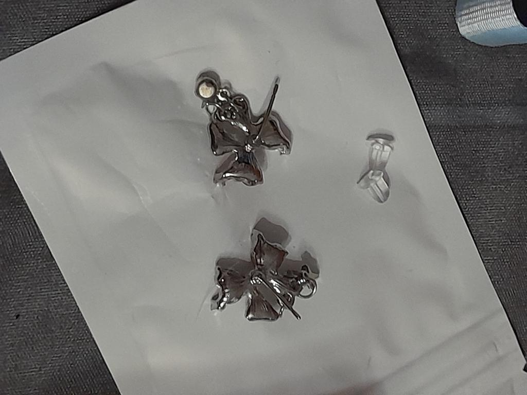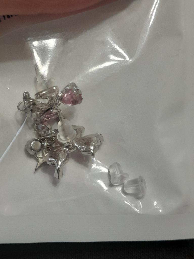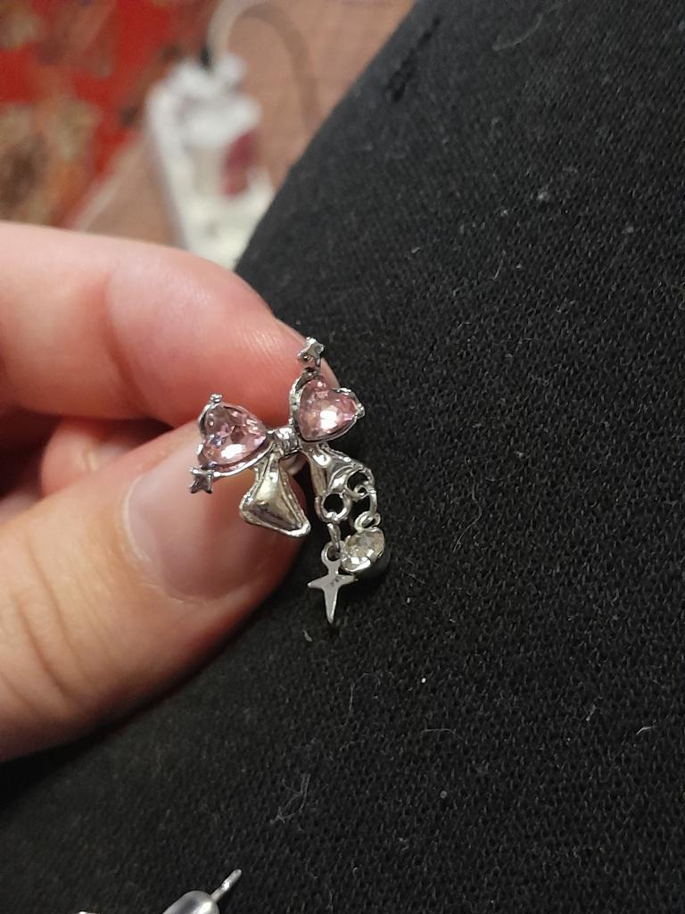 лично мне показались не совсем удобными, гвоздики слегка согнутые, выпрямлять не рискнула. в комплекте шли 4 силиконовые застёжки (обычная застёжка была бы в разы удобнее), маленькие шармики-висюльки держатся на тонюсеньких колечках, которые соединены не до конца, так что их либо самим соединять, либо ходить так пока не растеряешь