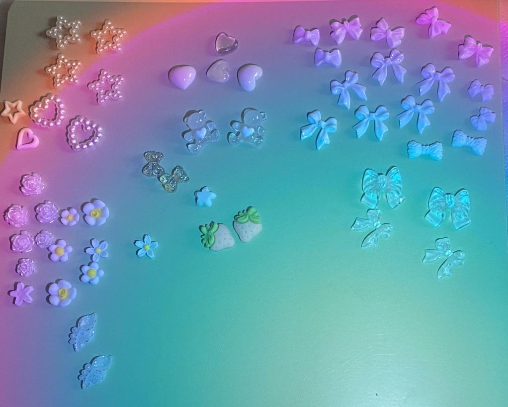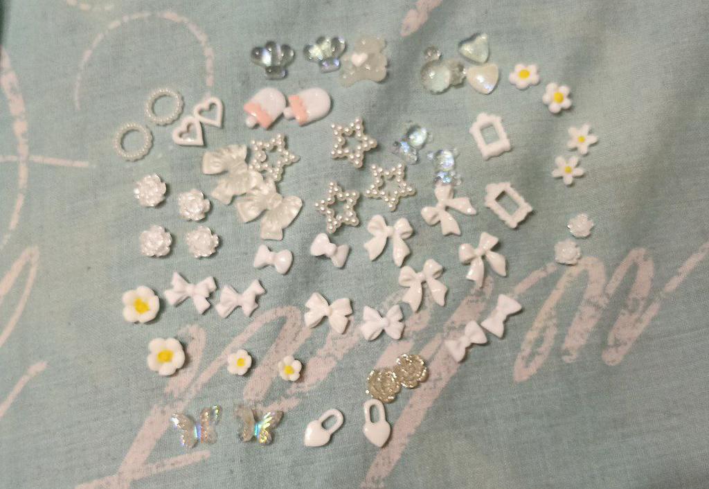 Пришло примерно 50 штук, все как указано в описании. Если так посмотреть на отзывы, каждому приходили свои фигурки. Даже на фото я смотрела и понимаю, что около 20 фигурок, из которых мне пришли, могут отличаться от тех, что на самом фото товара. Ожидала, что некоторые из них будут другие и не все так привлекают. Но несмотря на это, я довольна. Хотя минус в том, что ты ожидаешь увидеть одно, а приходит не совсем то, чего ждешь. В целом, я довольна полученным, ведь в основном была зациклена на бантиках,которые меня больше всего заинтересовали. Остальные фигурки тоже неплохие, разнообразные. Можно придумать достаточно интересных дизайнов. Единственное что заметила. Изначально один из бантиков показался странным. Нашла подобный ему, возможно брак, скорее всего. Можно посмотреть на фото, один из бантиков имеет отличие.