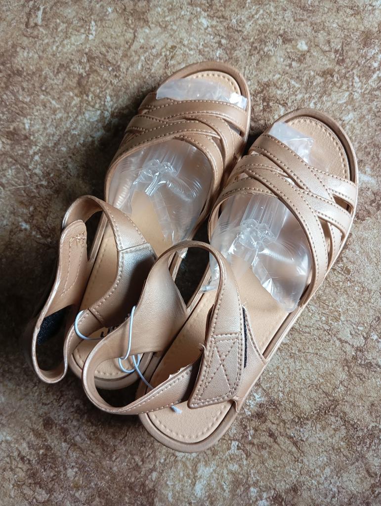 В посылке пришло сразу 14 заказов. Спасибо за удобство. Не надо много раз ходить на почту. Сандалии маломерят. У меня 37 размер обуви, заказала 38 размер. Как раз. Очень нравятся. Мягкие, удобные. Брала первый раз белые, проходила в них почти всё лето. Единственный недостаток, да и то, наверное, не обуви, а нашей местности, пыль ложится на обувь сверху и на подошву по бокам. Поэтому заказала повторно светло-коричневые. Сфотографировала новые и ношеные сандалии для сравнения, и чтобы не быть голословной. Рекомендую. Удачная покупка! Спасибо джуму за своевременную доставку и производителю за удобную обувь .