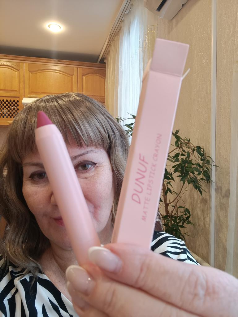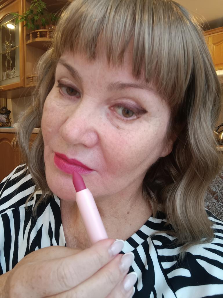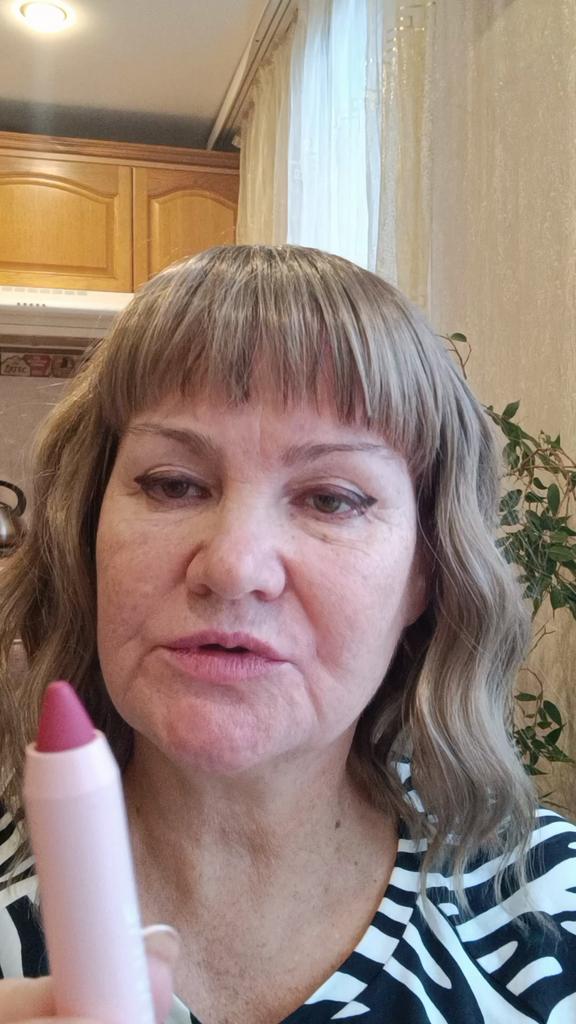 То ли контурный карандаш, то ли помада, не разбираюсь. Понравился!!! Нет запаха просрочки, тонкий ненавязчивый аромат. С первого нанесения перекрывает цвет губ. Достаточно одного слоя. Выслан цвет согласно заказа, но он не такой,как на промофото. Губы не стягивает. Не растекается по трещинкам ( эта инфа для возрастных дам)
