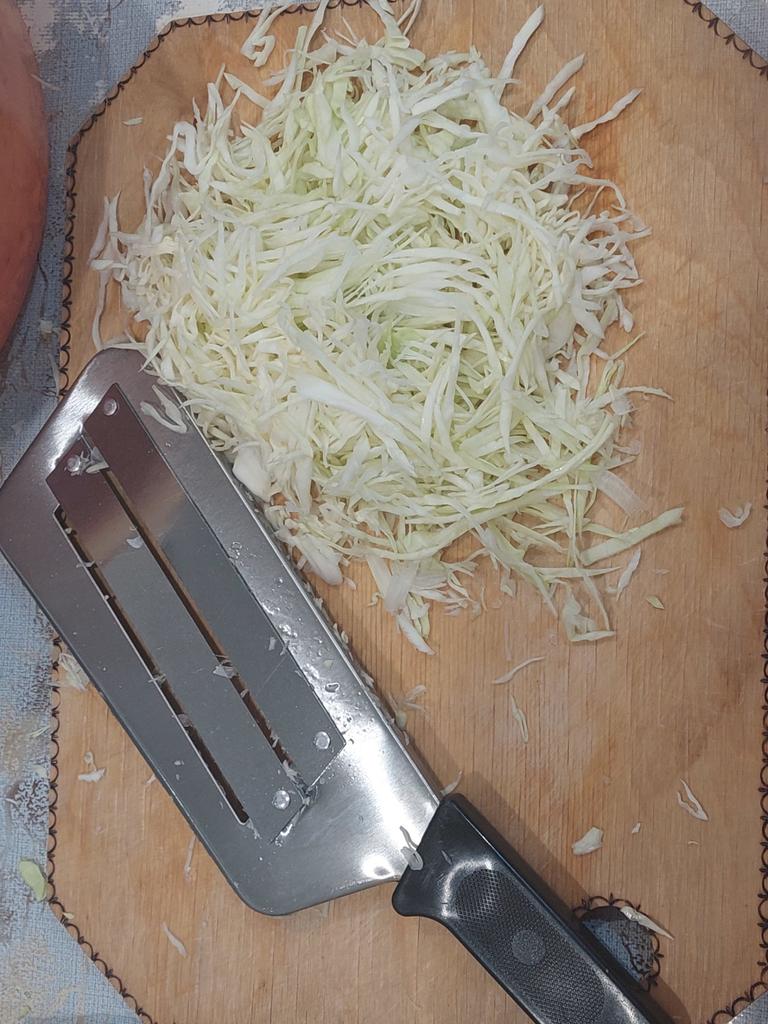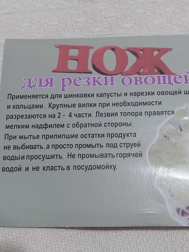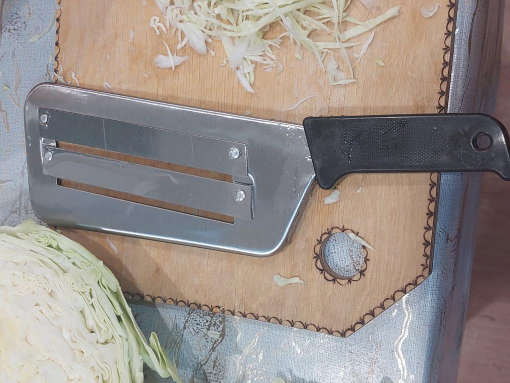 Нож столовый для нарезки капусты.Очень острый,имеет 2 лезвия,очень тонко режет капусту.Ножик хороший ,нужно к нему приспособиться.Вилок капусты режу вкруговую ,так мне кажется удобней.Рекомендую данный товар.Спасибо Джум.🧡