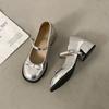Нежные туфли Мэри Джейн на устойчивом толстом каблуке, с новым легким вырезом, милые серебристые, женские туфли-лодочки с круглым носком, летние