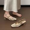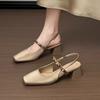 Модные сандалии на высоком каблуке с плетеным верхом и квадратным носком в французском стиле, летняя модная женская обувь из кожи и ткани на среднем каблуке, zapatos mujer