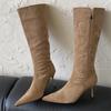 Мода Eilyken Мода Винтаж Тонкие Каблуки Женские Сапоги до Колена Мода Зима Сексуальный Острый Носок Стриптиз Вечеринка Обувь Zapatos De Mujes