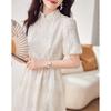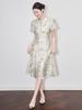 2025 yaz bol ve ince bağcıklı bel uzun etek üst düzey ağır işçilik nakış V yaka Tencel elbise kadın