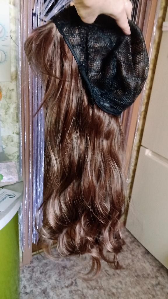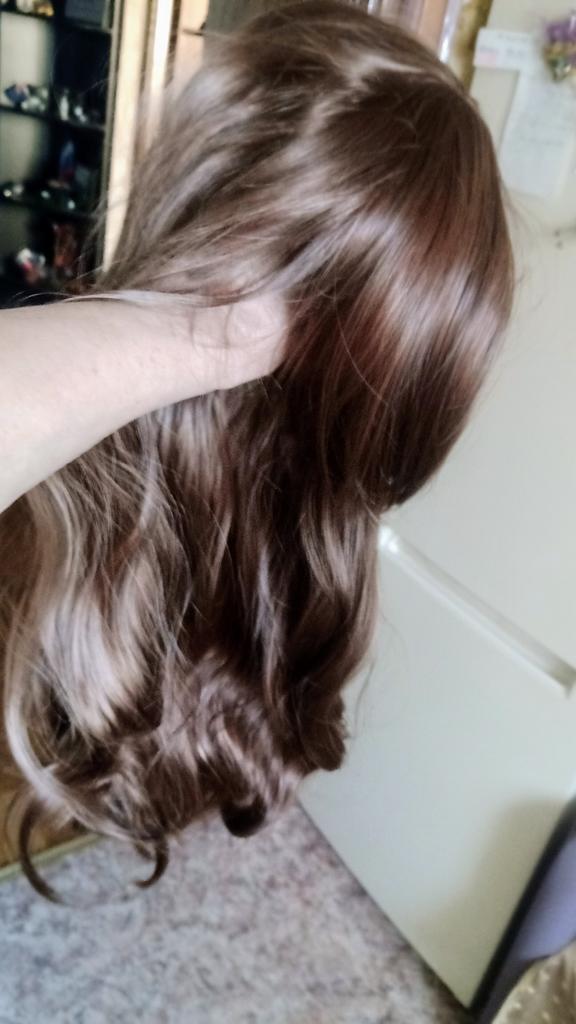 The wig fits a little, the bangs are long, you need to cut it to suit yourself, or you don’t have to cut it. The color is deep chestnut, the hair is shiny and pleasant.