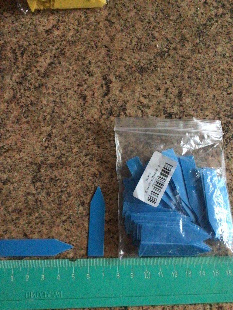 Замовляла сто , а прийшло 103. Справді водонепроникна,і ціна приемна, мітки як раз для россади беру. Поверхні має вистачити, але з моїм дрібним почерком зможу написати назву та дату, але ці мітки зможу перевірити лише у лютому-березні, коли почну висаджувати розсаду.