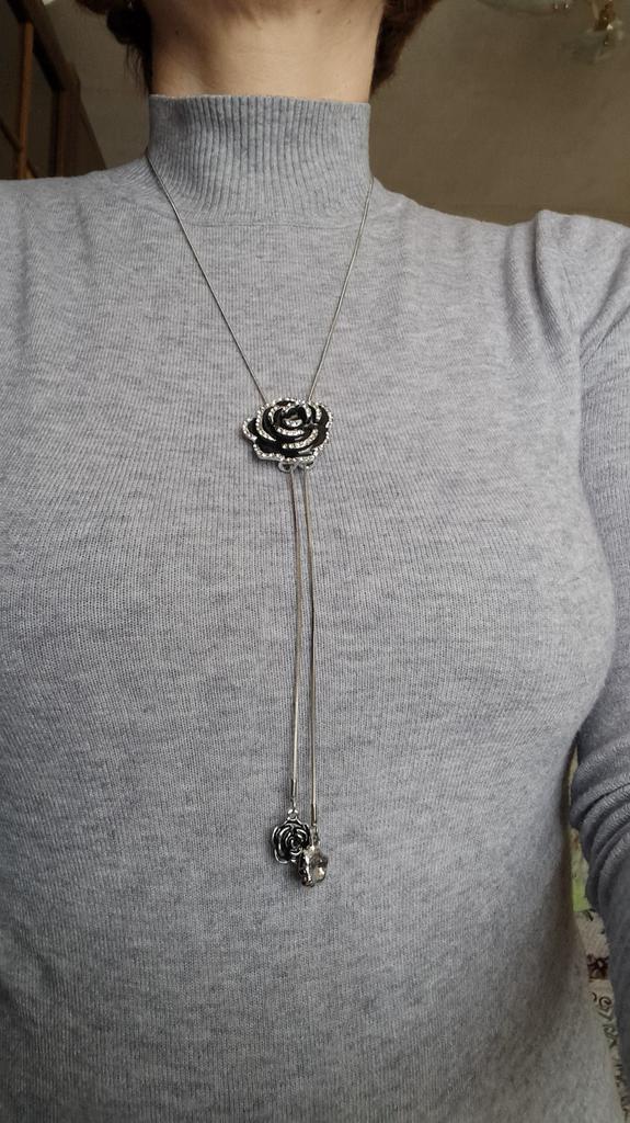 Кольє та підвіски з чорною квіткою та трояндою для жінок. Модне довге намисто. Жіноче кольє Femme