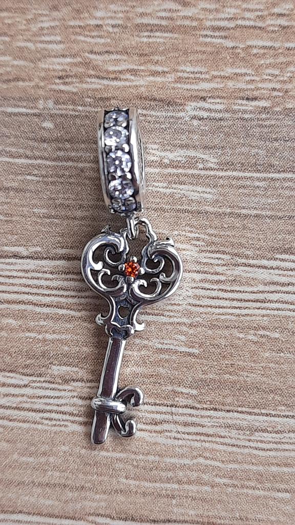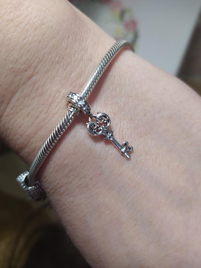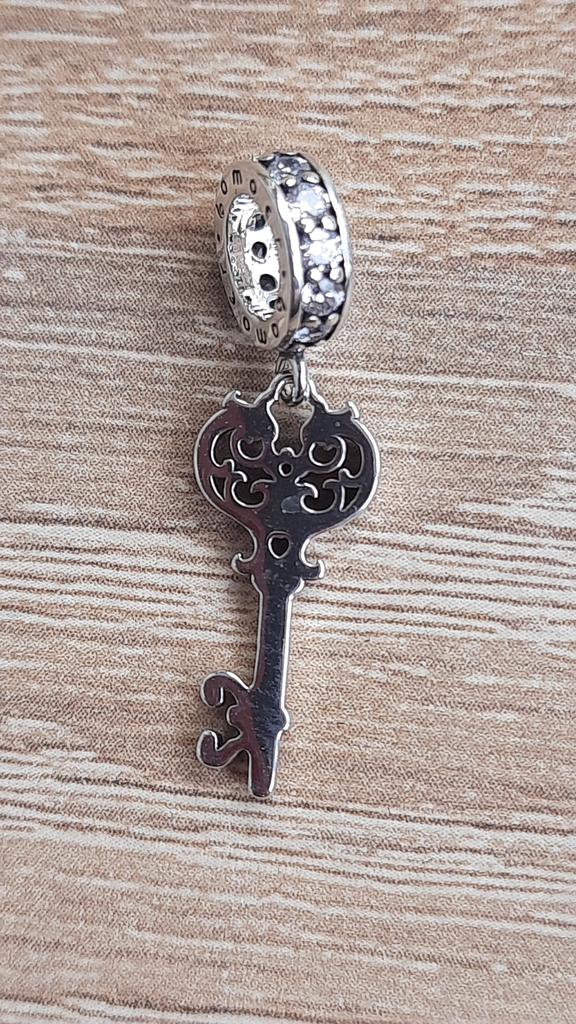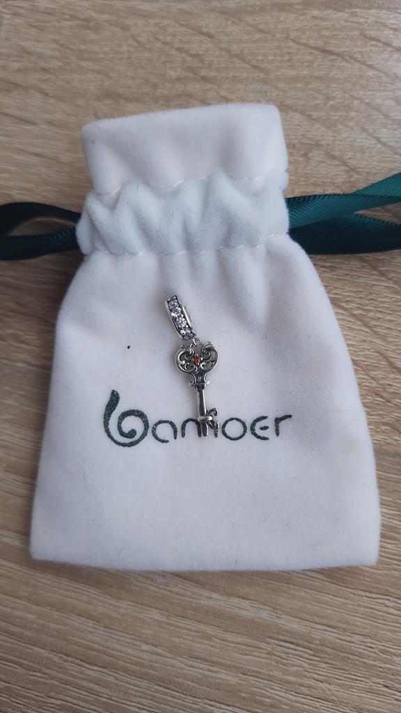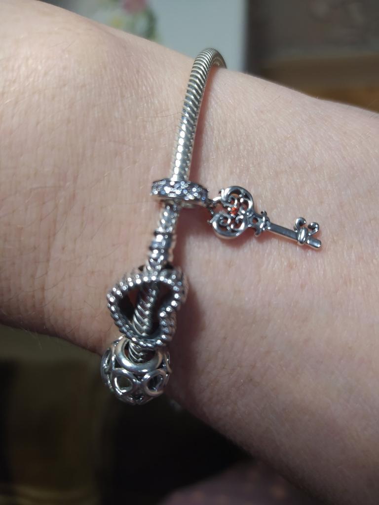 BAMOER Key Charm зі справжнього срібла 925 проби з вінтажним візерунком та підвісками для жіночого браслета
