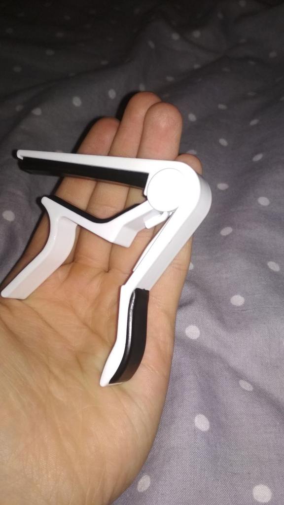 Каподастр йшов 18 днів до Львова. Він підходить для шестиструнної гітари. Сам по собі він тугий, але це добре (струни прижимає сильно через це вони звучать мелодійно). Зі сторони струн є тверда резинка,з заду теж є ризика тому ви не поцарапаєте гриф. В цілому каподастр хороший. Рекомендую товар і продавця