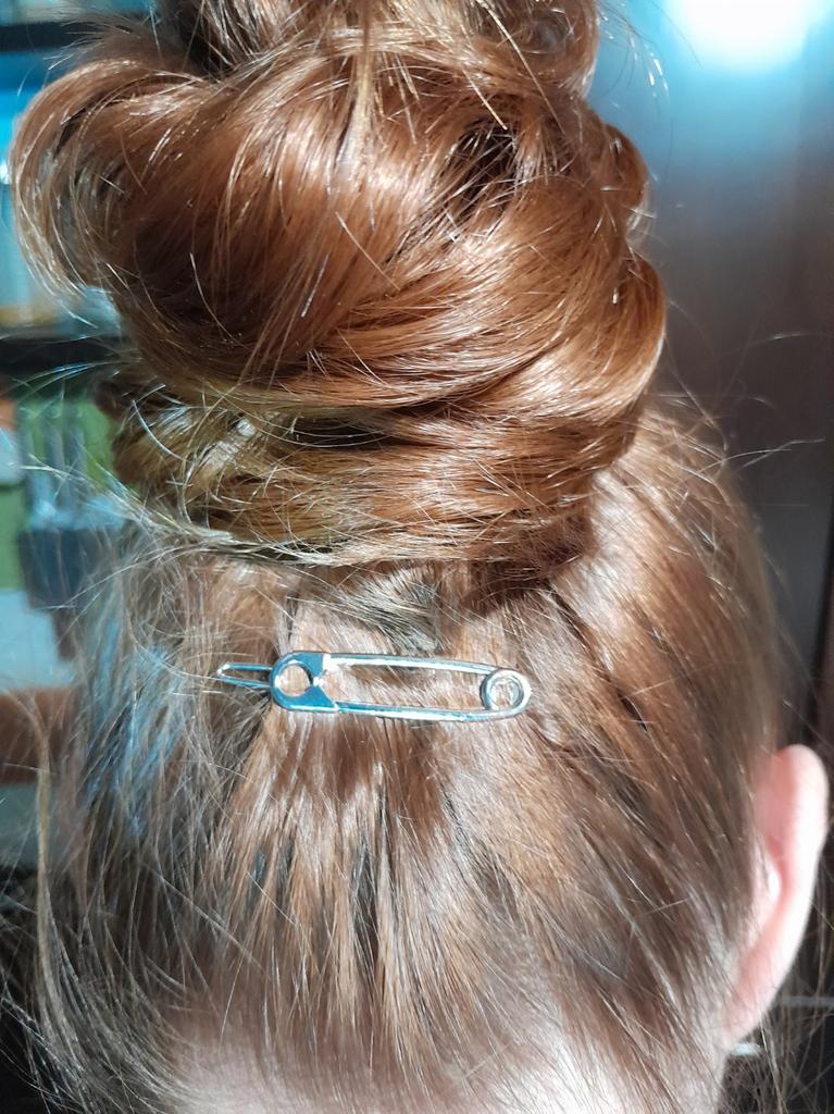 Невеличка заколка, збере пучок приблизно з невидимку. Підколоти або просто оригінальна прикраса. Якість нормальна, закривається міцно. В тонкому волосі трохи плутається, але це постійна моя проблема😌 Дякую, мені сподобалася.
