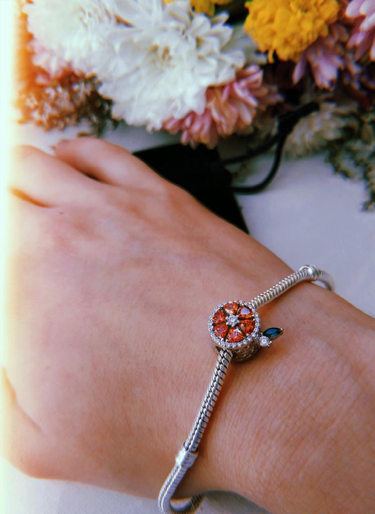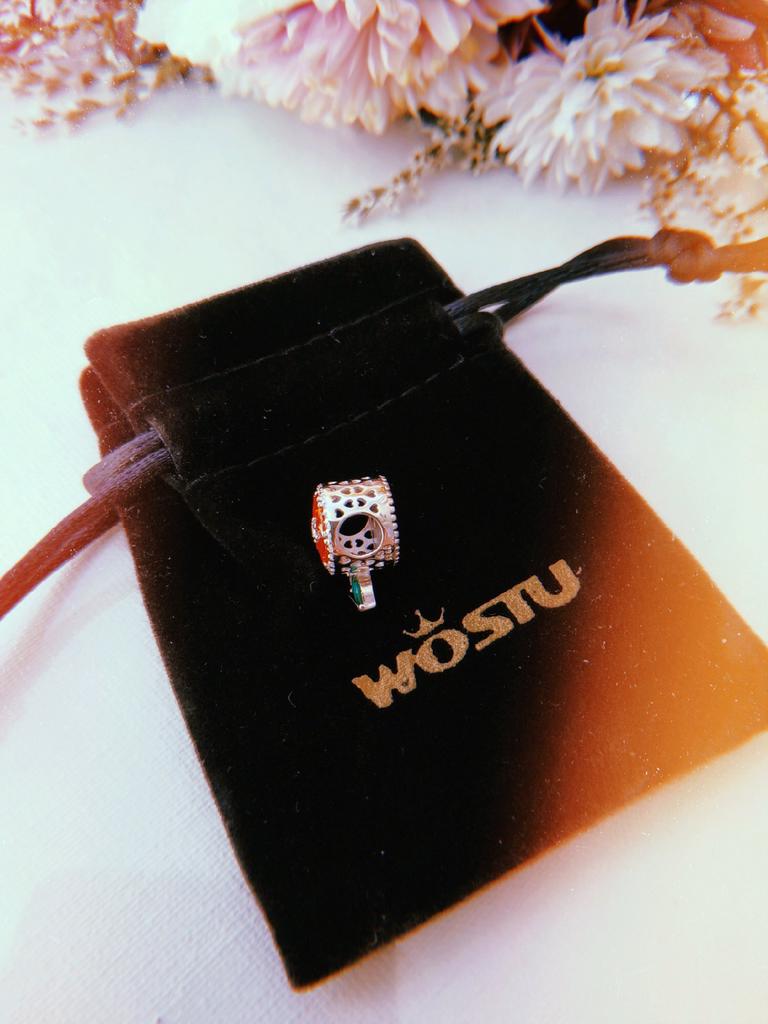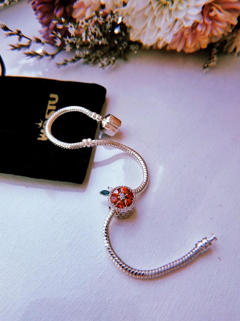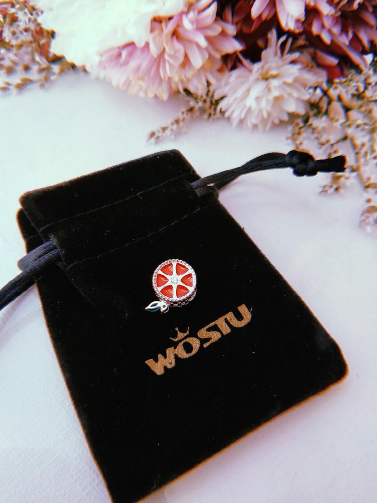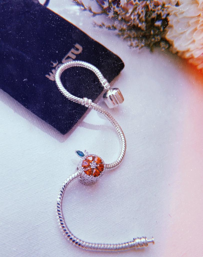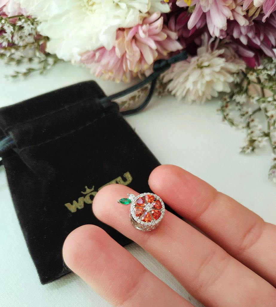 WOSTU Намисто зі справжнього срібла 925 проби з червоним грейпфрутом, круглим шармом, що підходить для оригінального браслета.
