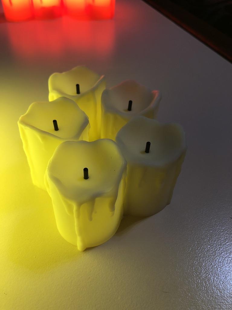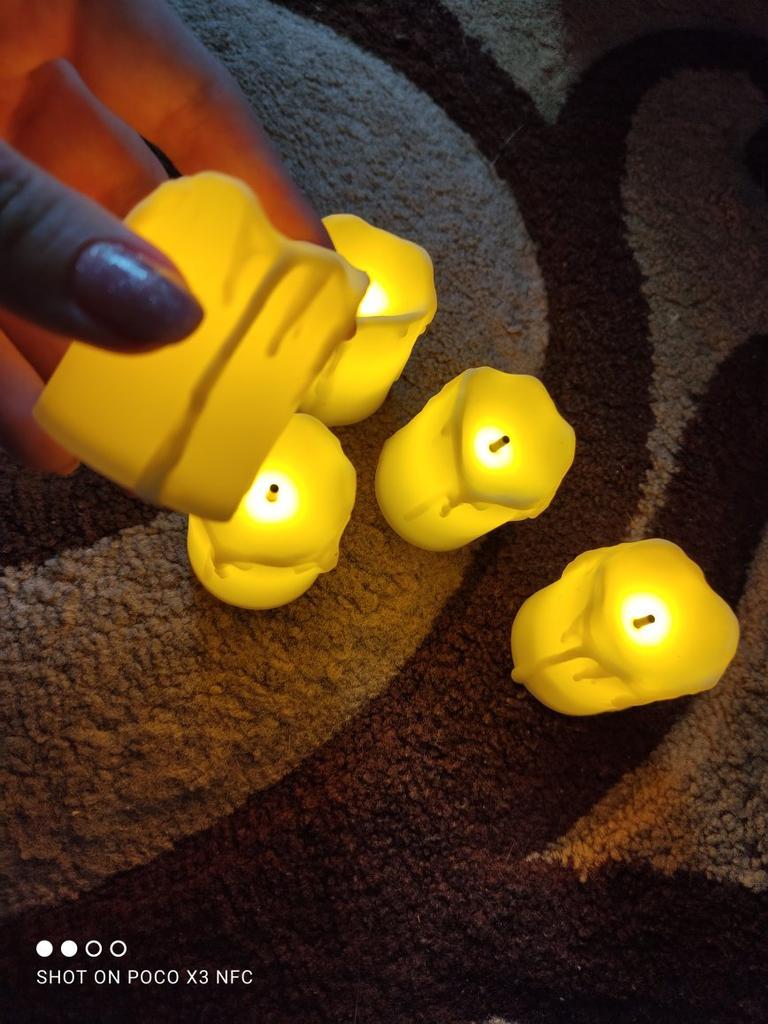 Компактні свічечки Мені сподобалися Світять жовтим світлом в білому корпусі, досить яскраво Світло чітке, без коливань Батарейки йшли в комплекті, але наскільки якісні не знаю, подивлюся по часу світіння Продавця рекомендую