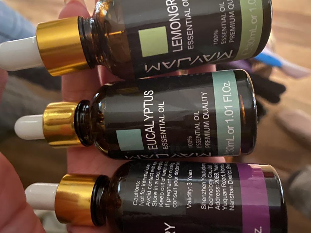 Кожна ефірна олія поставляється з 30 мл бурштиново-коричневих пляшок. Це дозволить зберегти масла свіжими і допоможе запобігти деградації світла..