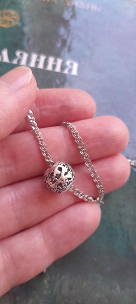 Нарешті я собі придбала цю намистину) Дуже гарна, маленька. Різблення акуратне, літера чітка. Проба срібла 925. Можна носити і на браслеті типу Pandora, і на шиї на ланцюжку. Дякую.