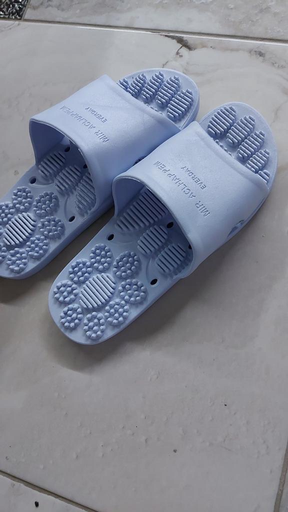 Третій раз замовляю ці тапки. Десь на роки два їх вистачає, а потім рвуться. Але нічого вічного не буває. Хай працюють, роблять ножкам масажик.