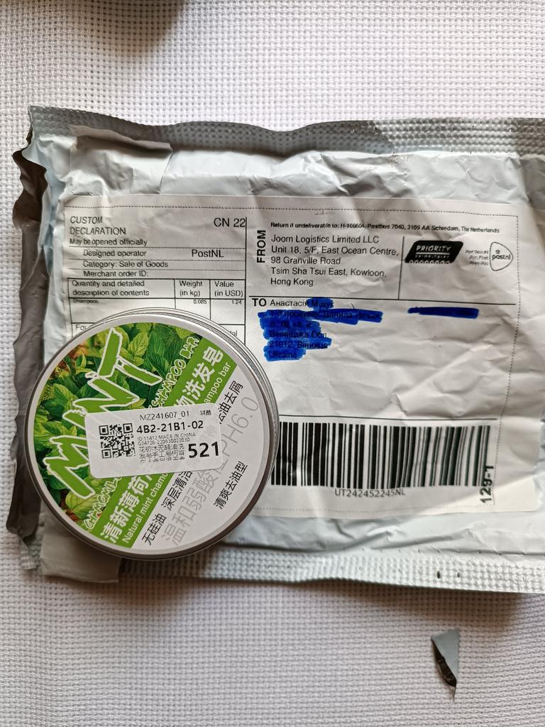 Товар отримала цілим, лише трошки коробочка на дні деформована. Всередині додатково упаковано в поліетиленову плівку. Пахне ментолом. Як спробую шампунь - доповню. Зараз випробовую натуральні тверді шампуні вітчизняного виробництва - буде з чим порівняти. Дякую, Джум!