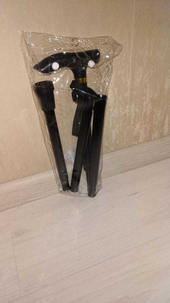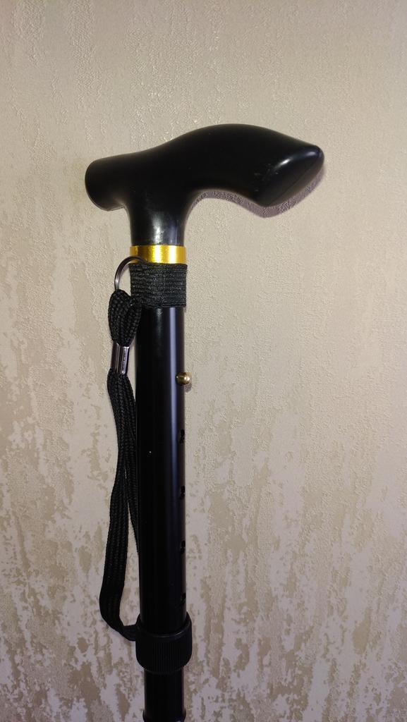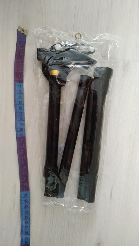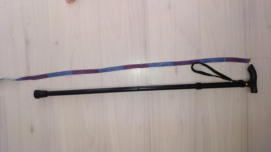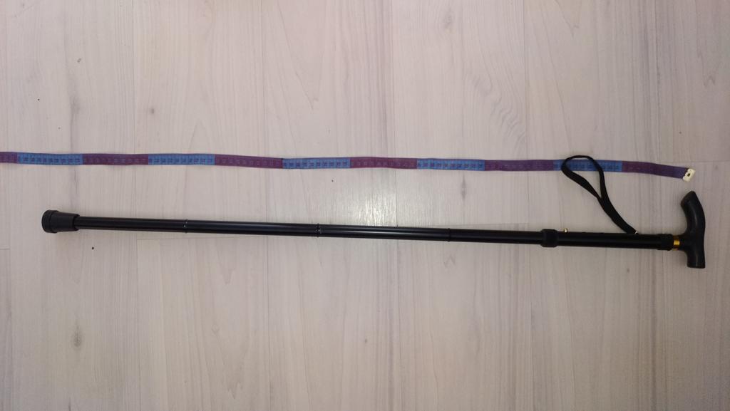 Ціпок досить дебелий. Довжина регулюється від 85см до 96 см. Не сковзається. У складеному вигояді 36 см. Складається за допомогою гумового шнурка.