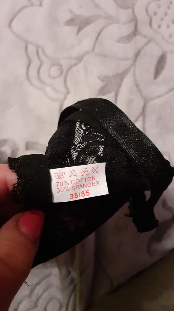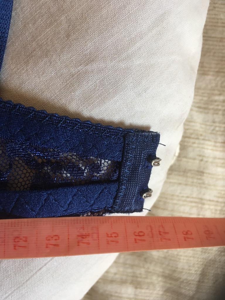 Ліфчик сподобався, пошито акуратно, тканина ніжна, ніде не давить, колір ніжно голубий. По розміру: ношу 85АВ, цей ліфчик чашка ідеально підходить, об'єм вільно на самий перший гачок, тож можна було брати 80 об'єм. Замовила ще в іншому кольорі вже 80В, це L