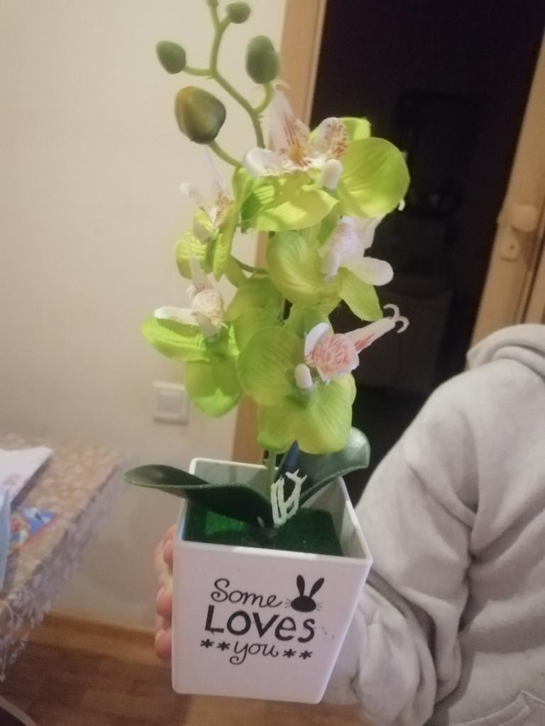 Добрий день Джум. Товар отримала колір як на картинці, орхідейка гарна не величка, виглядає як справжня, на картинці виглядає більш пишніша ніж моя. Надпісь не розмазана. Орхідейка сподобалася. Дякую продавцю і джуму за товар.