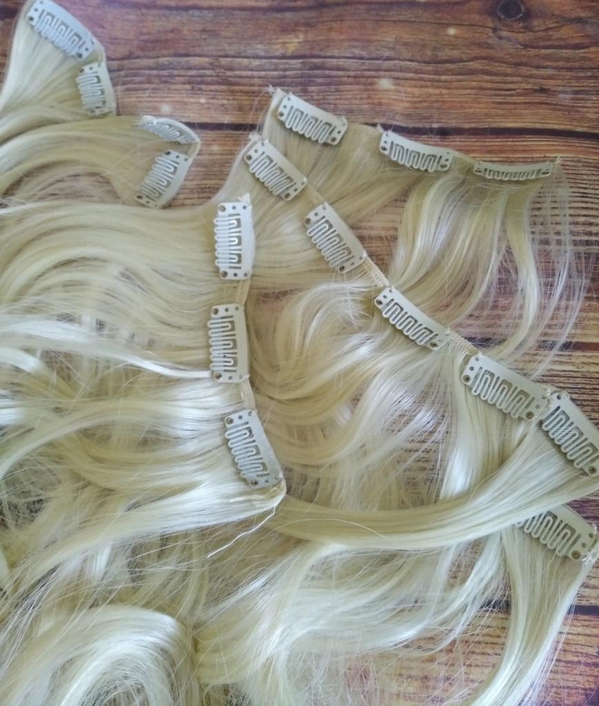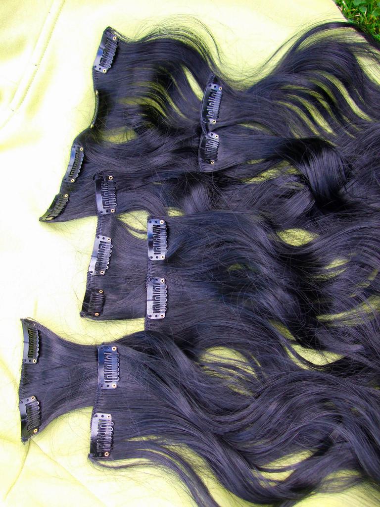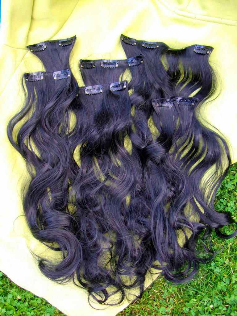 The synthetic wavy hair extensions match my hair texture and color perfectly :) They are 22 inches long and added a lot of volume to my hair :) They are synthetic but they look and feel just like human hair, they don't have that shiny fake look to them that a lot of other silicone hair extensions have. They have several colors to choose from. The clips are easy to open and close and slide into your hair, and are comfortable to wear for daily use.