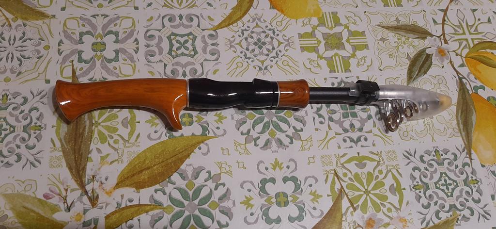 Ручка из слизького пластику під дерево,намотка скловолокна дуже погана і груба,як провести по секціях таке враження що тримаеш кусок нождачки 60м.в роботі не пробував.не рекомендую.