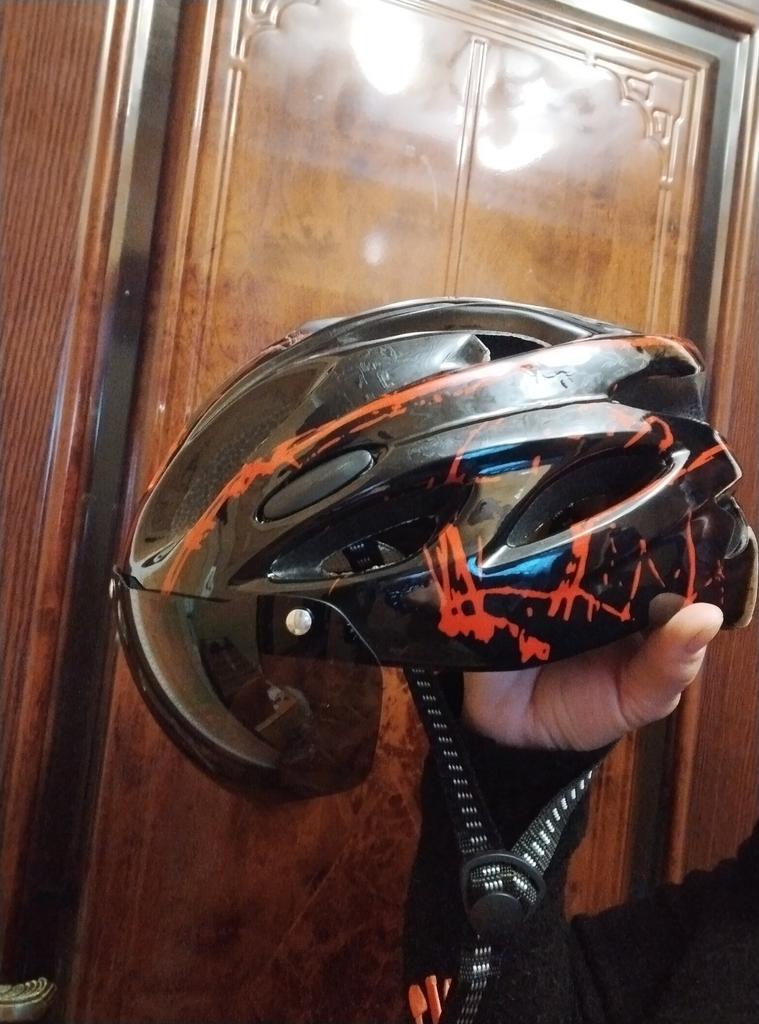 Чудовий шолом. Добре, що є регулювання по голові. Можна і на чоловіка, і на дорослу дитину. Легкий і дихаючий за рахунок великої кількості отворів. Вспінений шар товстий, сподіваюсь ніколи не перевіряти на міцність.