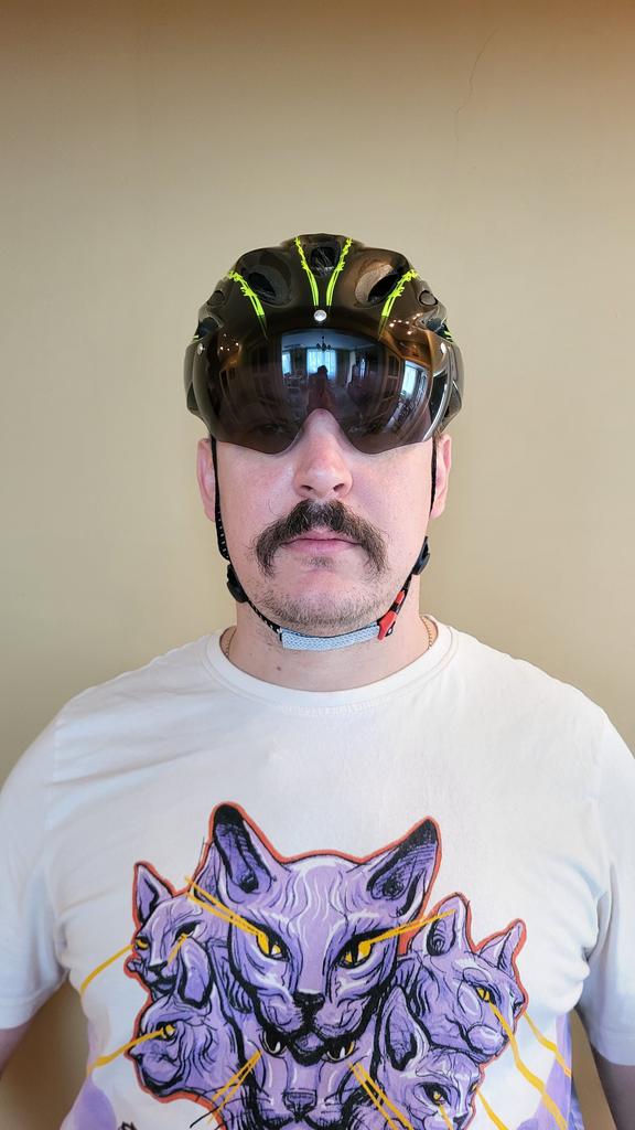 Топ за свої гроші - ідеально сів на голову, регулюється розмір, м'які вставки в середині та на підборідді, дуже цікаве рішення з окулярами на магнітах - увечері, можна їх перевернути, аби не заважали!