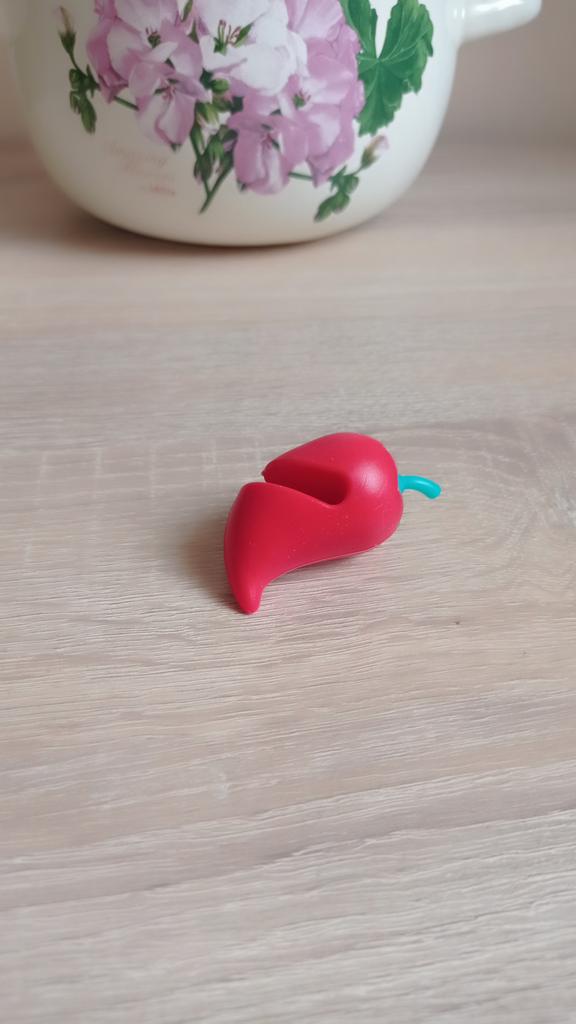 Купила раніше морквину, гарна, суцільне лиття з силікону, у використанні зручна, тепер ось вирішила взяти перчинку, а вона знизу суцільного лиття, а зверху - пуста, і хвостик відокремлюється, незрозуміло для чого, і як так, що вони різні в одному магазині