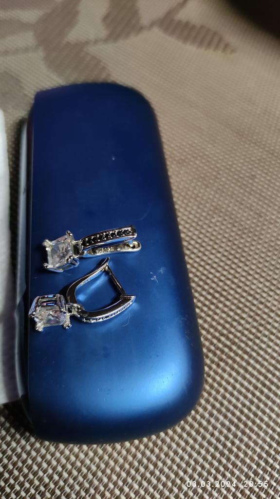 Акуратно запаковані сережки у велюровому мішечку!❤️ . Дякую продавцю! Сережки з підвіскою. Камінчик блискучий, вставлений, величенький)! Є манюсенька проба?! Виглядають дуже пристойно! Рекомендую!!! + Рекомендую!!! Гарненькі! Не потемніли!!! Камінчик блискучий!!! Дякую продавцеві!!!👍👍👍