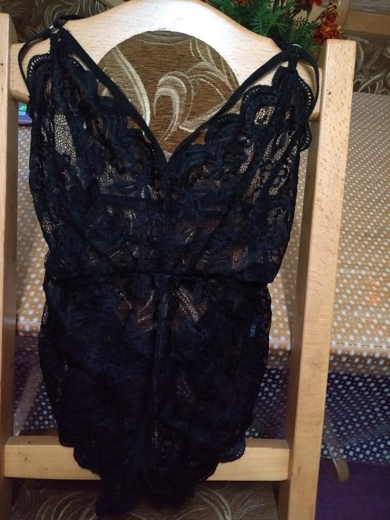 Гарненька річ. Головне, щоб найвужча частина боді (талія) налізла на найширшу частину стегон 😂, бо одягається через ноги. На мій ОС 110 см тіснувато, надягати треба обережно, щоб не порвати ніжне мереживо. На самі стегна сідає гарно.