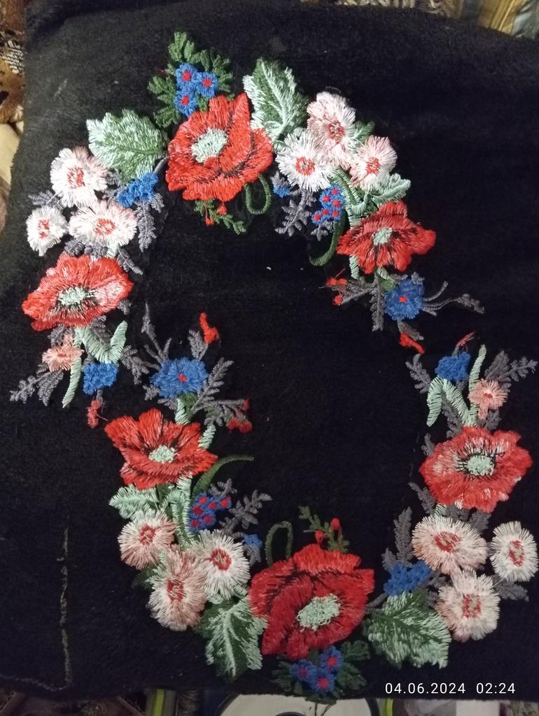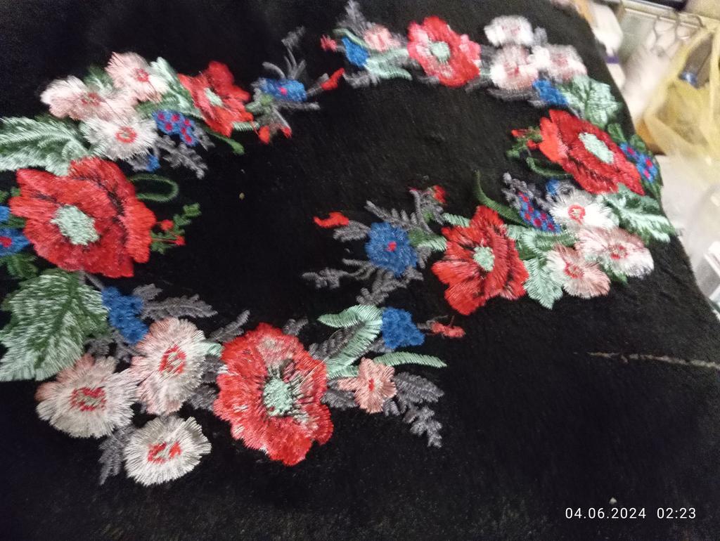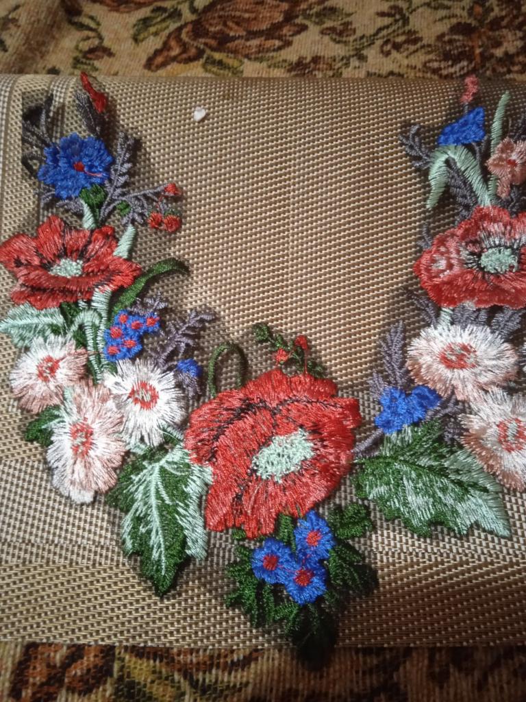 Замовлення прийшло вчасно чекала близько трьох тижнів. Вишивка гарної якості вишита на тоненькій сітчастій основі чорного кольору, без клейової основи. Для пришивання доведеться з початку приметувати, а тоді вже пришивати щоб виглядало гарно та акуратно. Вишивка виконана в гарних яскравих кольорах в якісному виконані, придбаним товаром задоволена товар та продавця рекомендую дякую продавцю та Joom. Після пришивання на одяг доповню та додам фото одягу у кінцевому результаті. Додаю фото вже готового одягу, в кінцевому результаті у мене вийшла красива нарядня святкова неповторна сукня в українському стилі. Дівчата рекомендую купляйте творіть і створюйте свій індивідуальний та неповторний одяг у вишитому стилі.