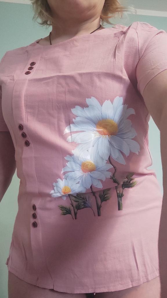 Проста лляна блузочка.ношу xl a замовила 3xl.переживала що горловина буде завелика бо в талії хотіла щоб була вільна але вона як раз.все ідеально добре замовила на 2 Розміри більшу