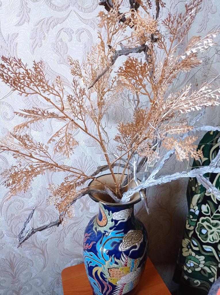 Веточка золотая , стебель длинный , все отгибается как захочешь. На фото она в большой вазе и я еще подогнула стебель.