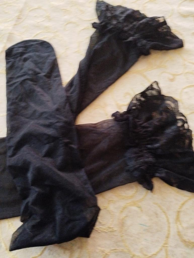На ріст 164 дістають ледь вище колін. Мереживо без силіконових полосок, тому трохи скручується на нозі. Тримаються на тонкій резинці, це трохи незручно. Підходять на дуже тонку ногу. Більш схожі на гольфи вище колін, а ніж на чулки. В практичному використанні, лише як декоративні, бо при ходьбі сповзають.