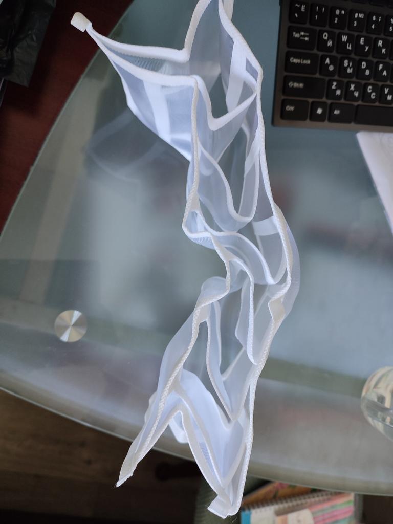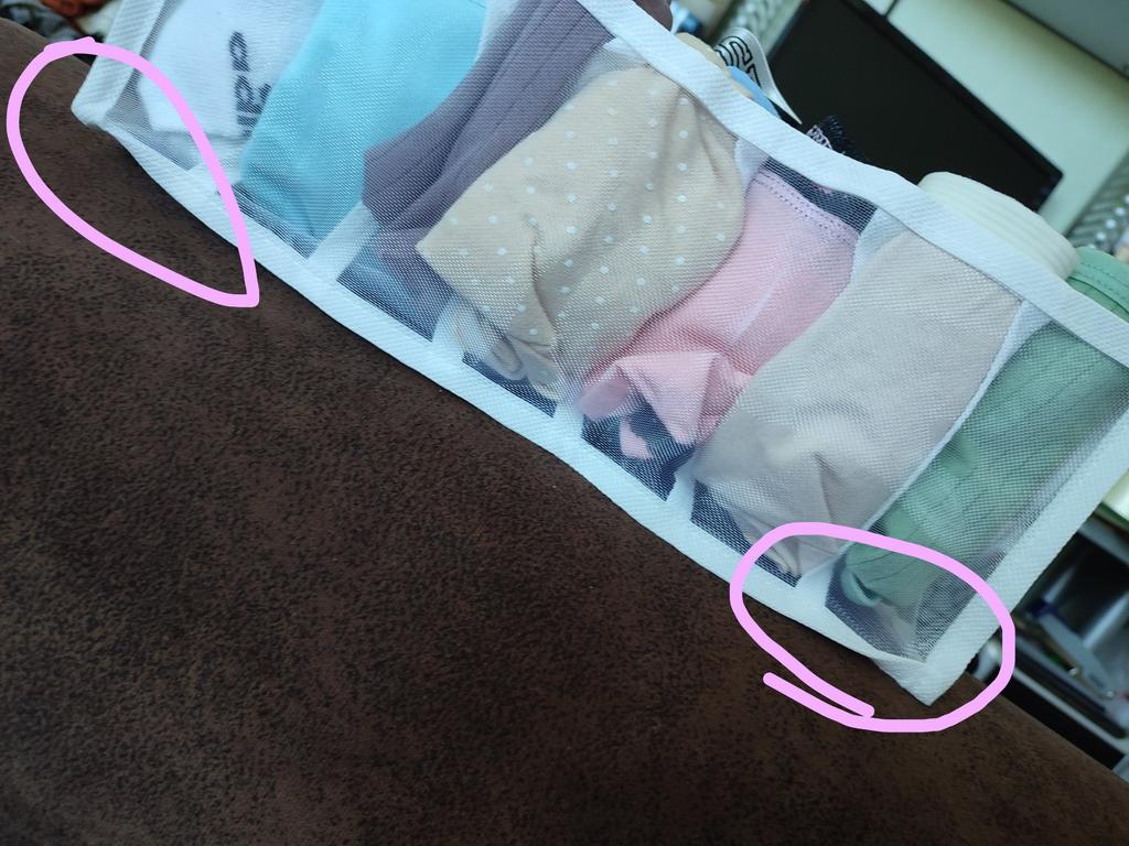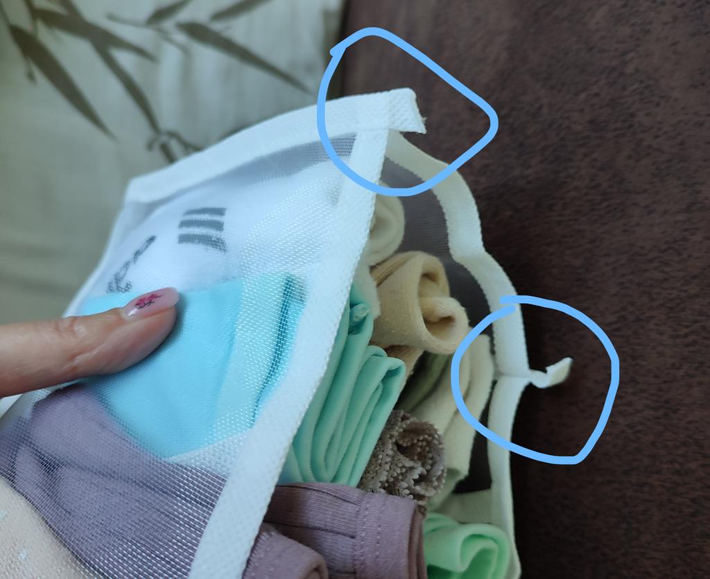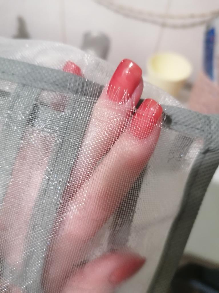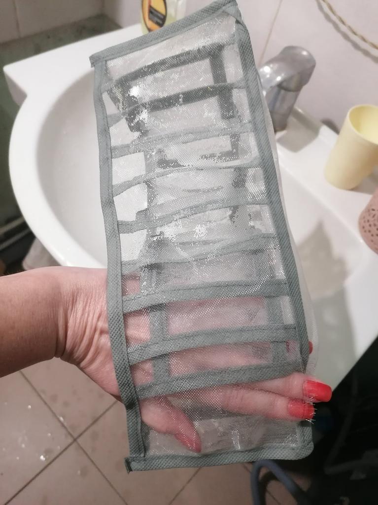 Зроблено з сітки по типу як на вікна від комах натягають. Поки не зрозуміло на скільки зручно користуватись. Відділення дуже маленькі, дійсно 1 пара чи трусів чи шкарпеток влізе, подивимось. Не довго раділа обнові..... Перед використанням вирішила прополоснути органайзер і.... Зразу знайшла дірку....... Спробую відремонтувати, але відчуття від придбання зіпсоване
