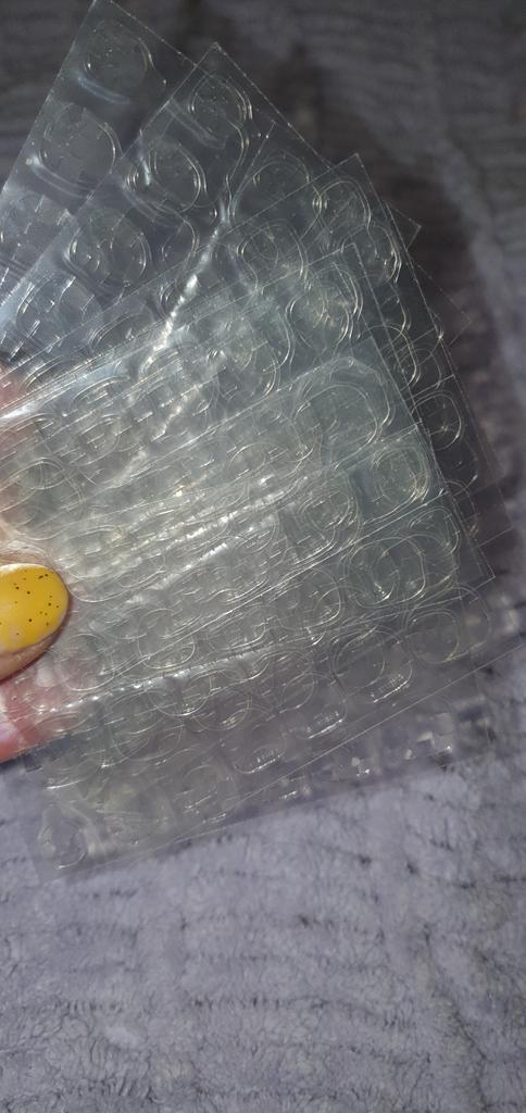 Не дуже добрий клей. Нігті потрібно перед вечіркою наклеїти, весь час слідкувати, щоб не відклеювались, не намочити, акуратно поводитись і т. д. Після всього відклеїти, бо для повсякденного використання це зовсім не підходить. Крім того, краще вже хай би наклейки були завеликі, ніж замаленькі, мої нігті більші, ніж наклейки, і тому накладні нігті погано приклеюються.