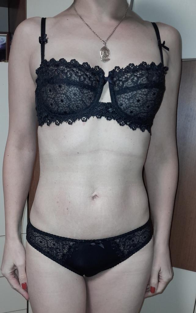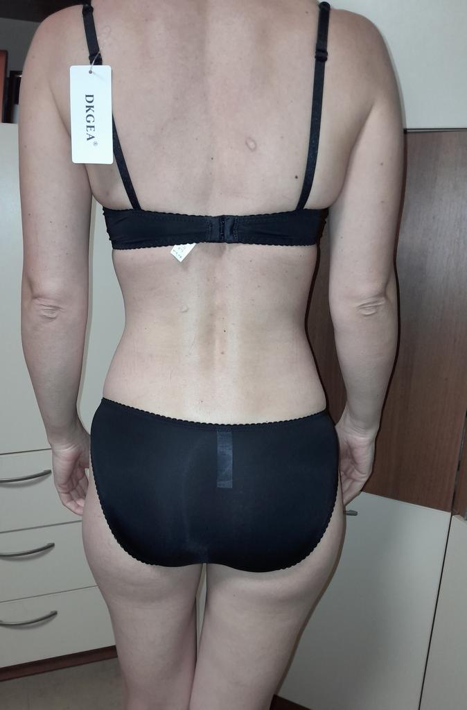 Комплек дуже сподобався, якість гарна! На параметри 87×65×90 брала 75В та трусики М. Бюстгальтер підійшов добре, чашку можно було б менше, це не наша В, більше С, а трусики малуваті, треба на розмір більше.